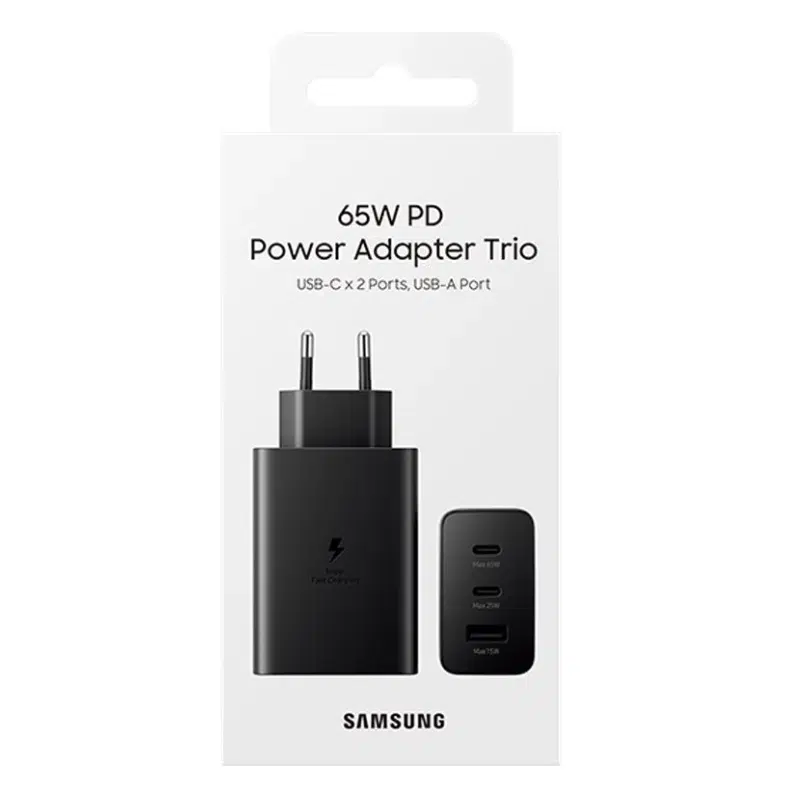- Original Samsung Power Adapter Trio offers Super Fast Charging up to 65W.
